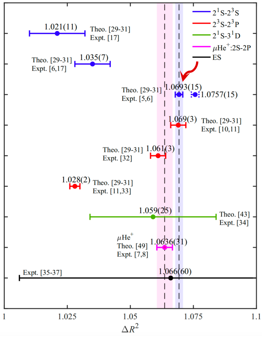 近期,J9国际站 J9原子分子外场理论研究团队联合加拿大新不伦瑞克大学、浙江理工大学、海南大学等科研组织,在氦原子同位素位移研究方面取得重要进展,成功解决了“氦原子核电荷半径方差之谜”。