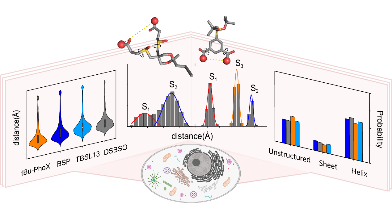 本研究对四种主流原位化学交联剂在细胞内的性能做了全面的比较评估,研究结合蛋白质结构分析和全原子分子动力学模拟,系统揭示了交联剂长度、骨架特性、二面角等结构参数与交联剂动态性之间的关系。结果发现,虽然不同长度的交联剂在捕获蛋白内部氨基酸间距方面表现出类似的效率,但这种“趋同”并非源于交联剂的完全伸展,而是与其自身的动态特性密切相关。这一发现突破了以往对交联剂性能的传统认知。